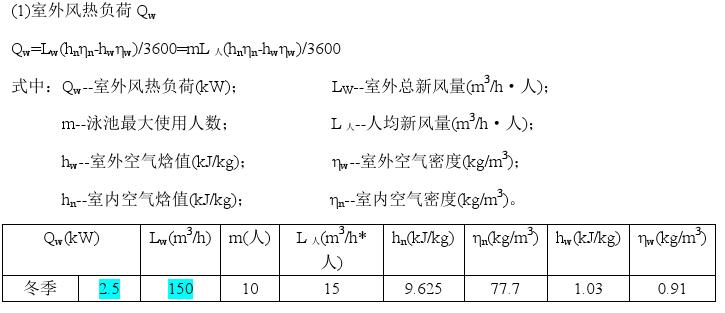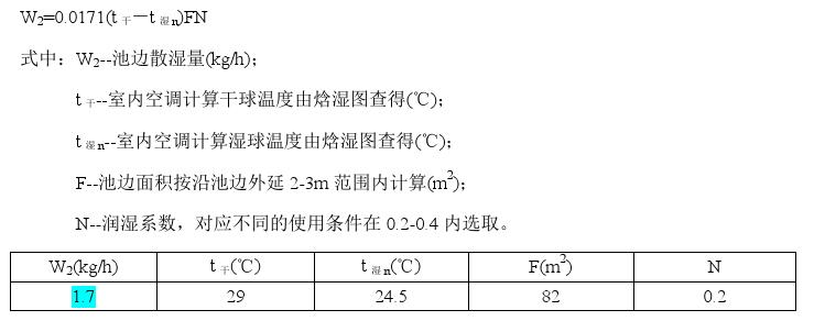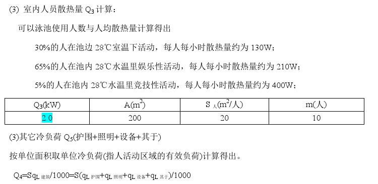 (2)游泳池的水表面、池底、池壁、管道和設備等傳導所損失的熱負荷計算