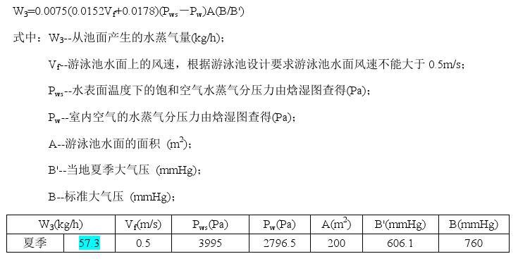 (1)游泳池水表面蒸發損失的熱量,按下式計算: