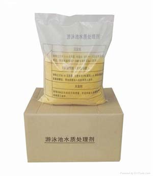 泳池放滿水后,(視水質情況)投放TCCA片劑,速溶片劑按每m32-4g量直接均勻地撇如池水中,藥片沉入池底月15分鐘即完全溶解。放藥時間選擇收場后或早上無人游泳時。正常時間最好在開放前1-2小時加藥。緩溶片劑在循環系統加藥裝置投加。絮凝劑可依據水質渾濁度的標準來施放。不符合此標準應投放,絮凝劑一般每星期1-2次。用量沒1000m3水放5-10kg,投放前應測試水中PH值,如PH值偏低(<7)應加PH。